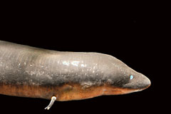 The two-toed amphiuma is the largest salamander in North America, reaching a length of four feet. All four limbs are present, but they are significantly reduced giving them an eel-like apperance.